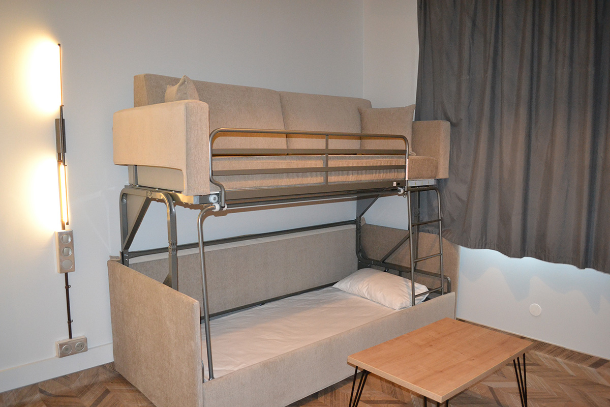 Type de lit : GL italienne 160′ et lit superposé 80′ / canapé dépliable